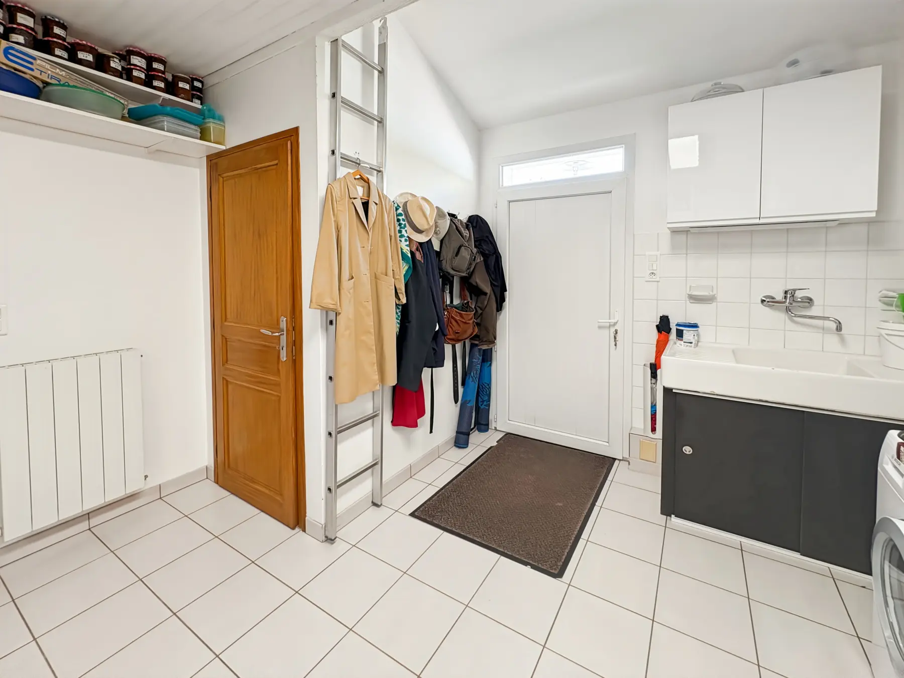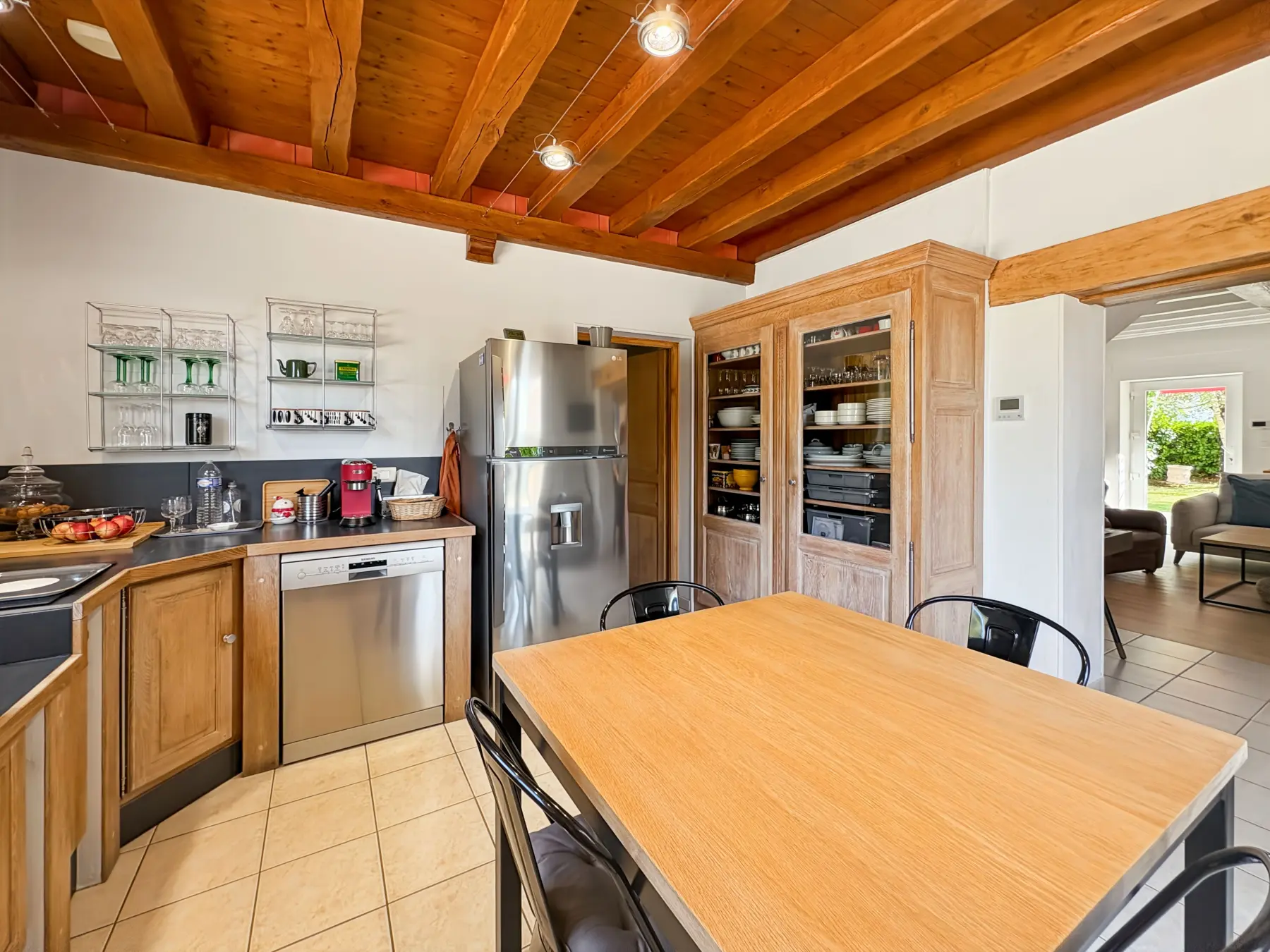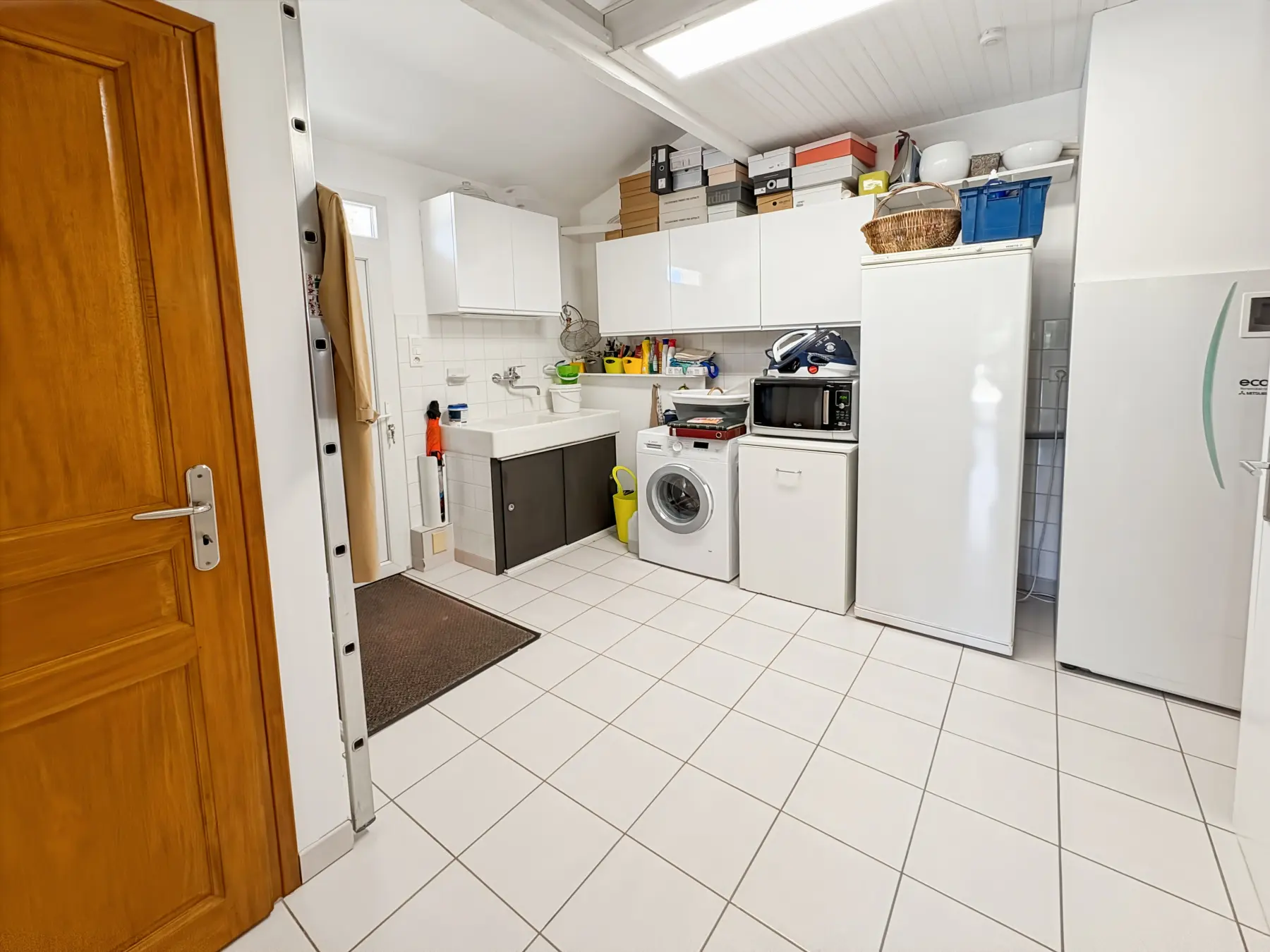 En partie jour, vous disposerez d’un spacieux séjour de 34 m² avec une magnifique cheminée, donnant sur une belle salle à manger lumineuse de 23 m², d'une cuisine meublée et équipée (four, plaque, hotte et lave-vaisselle) de 17 m², et d'une grande buanderie, le tout avec un accès sur l'extérieur.