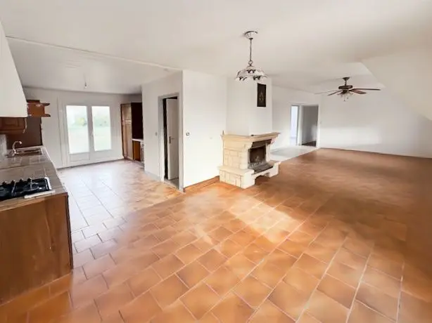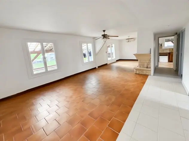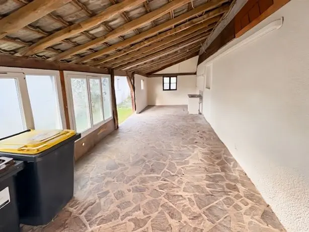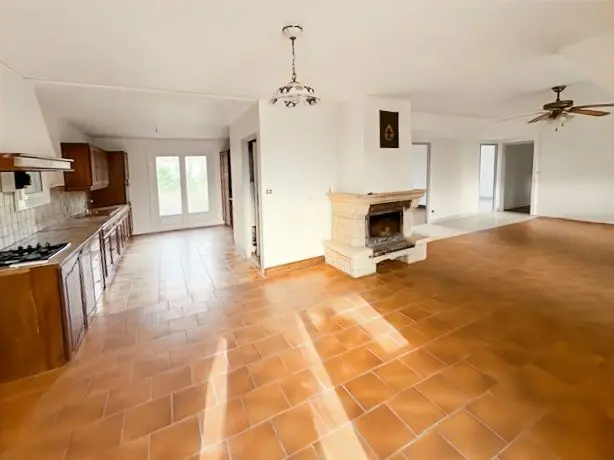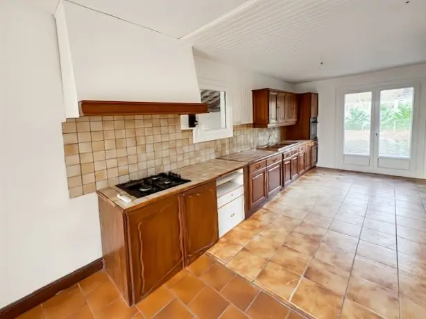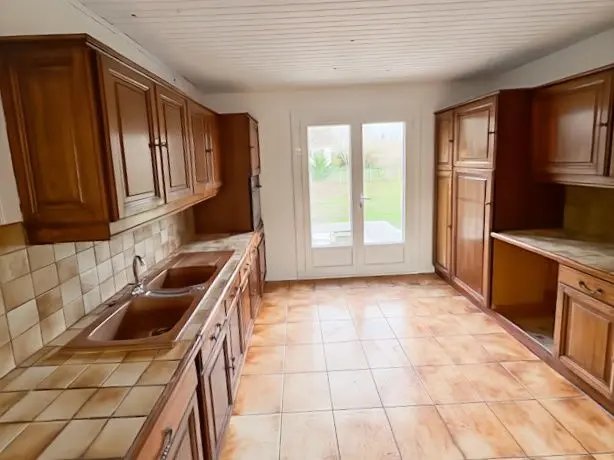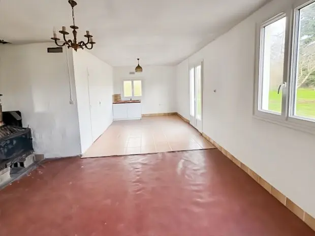 Construite en 1975, elle est en bon état et comprend cuisine aménagée avec séjour de 58m², trois chambres, WC et une salle d'eau. A cela, s'y ajoute une autre pièce de vie, une chambre et une autre salle d'eau.