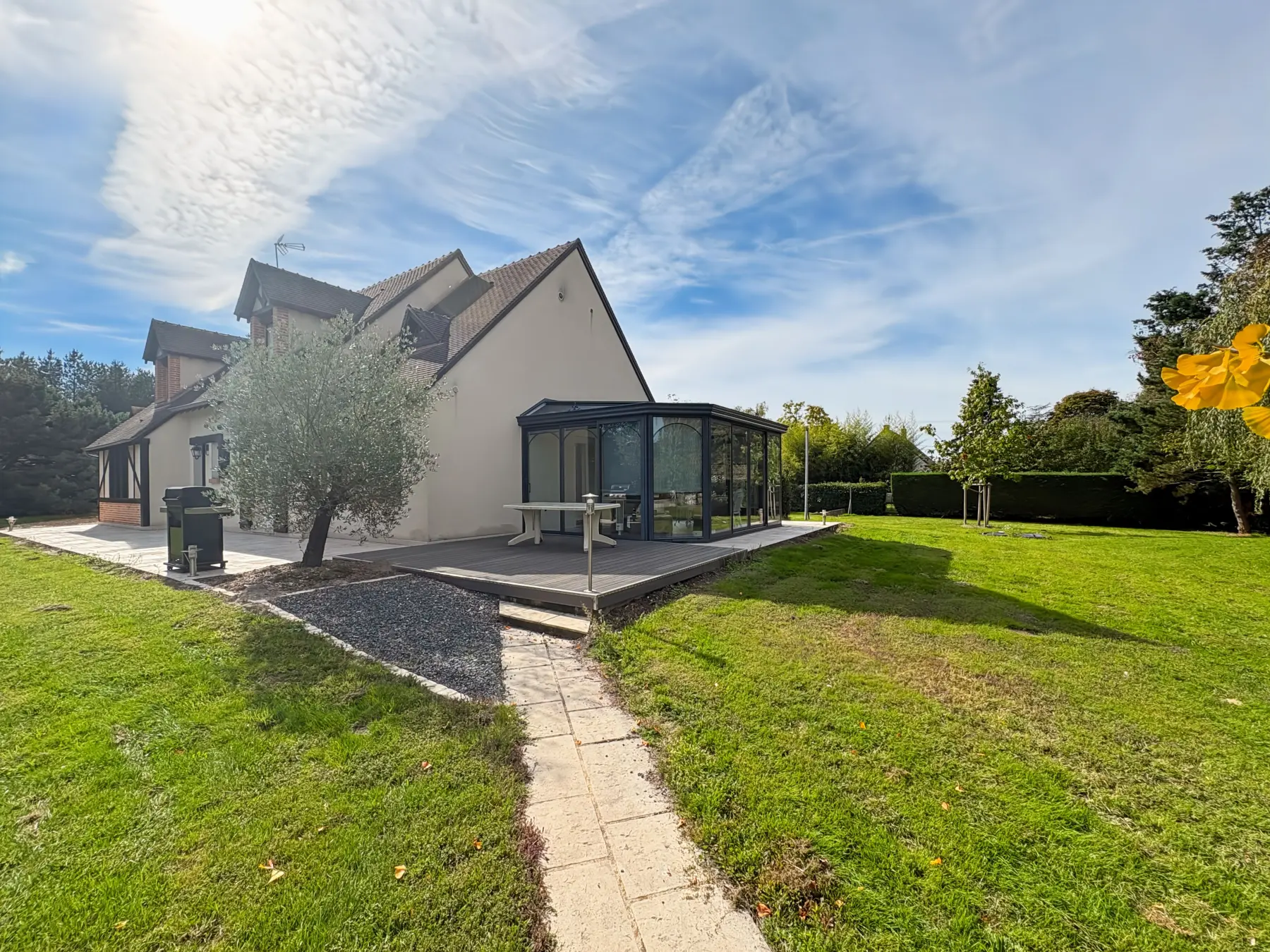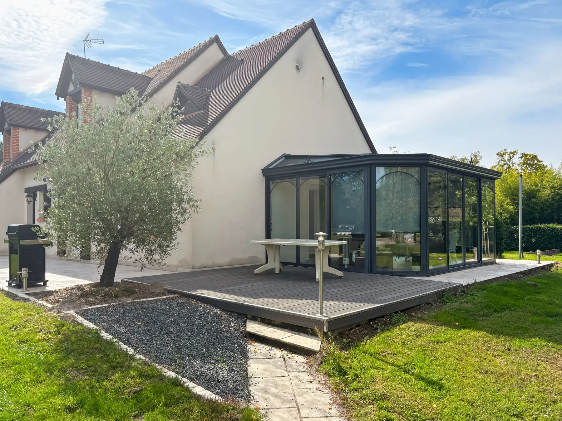 En partie jour au rez de chaussée vous disposerez d’un spacieux séjour, d'une salle à manger et d'un espace bureau de 59 m² avec une cuisine équipée (plaque, four, hotte et lave-vaisselle), d'une grande buanderie, le tout avec accès sur une lumineuse et grande véranda.