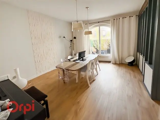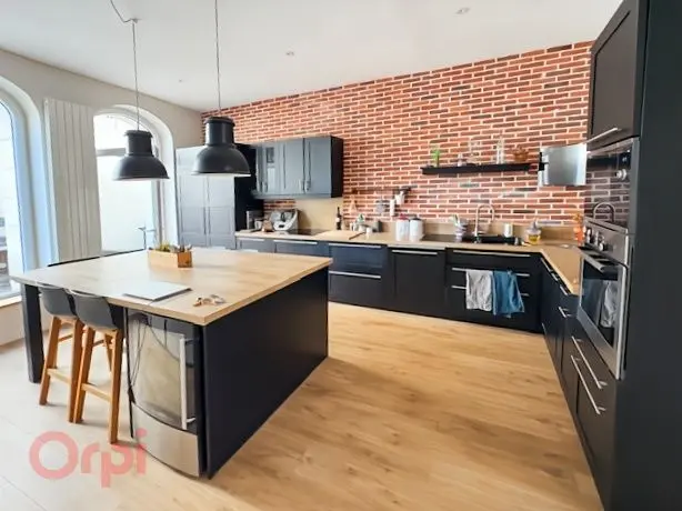 Au rez-de-chaussée, vous serez séduits par une spacieuse pièce de vie traversante, baignée de lumière, comprenant un salon convivial, une salle à manger lumineuse et une cuisine contemporaine ouverte, mariant élégamment briques apparentes et bois chaleureux.
