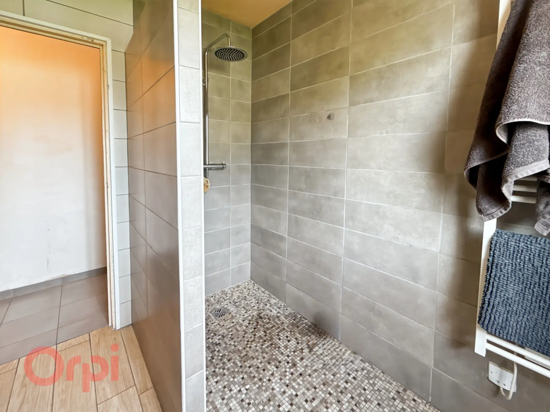 Au rez-de-chaussée, vous découvrirez un séjour lumineux, parfait pour accueillir vos moments de convivialité. La cuisine, aménagée et équipée, dispose d’un bar avec plan de travail, offrant un espace fonctionnel et convivial. Un couloir dessert deux chambres, dont une avec placard intégré, une salle d’eau moderne avec douche à l’italienne, ainsi qu’un WC séparé.