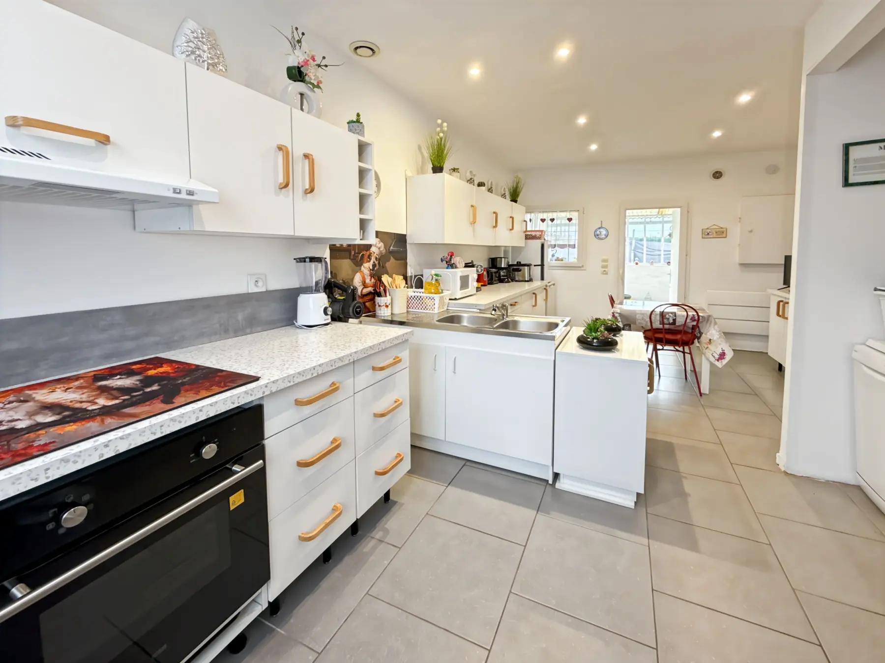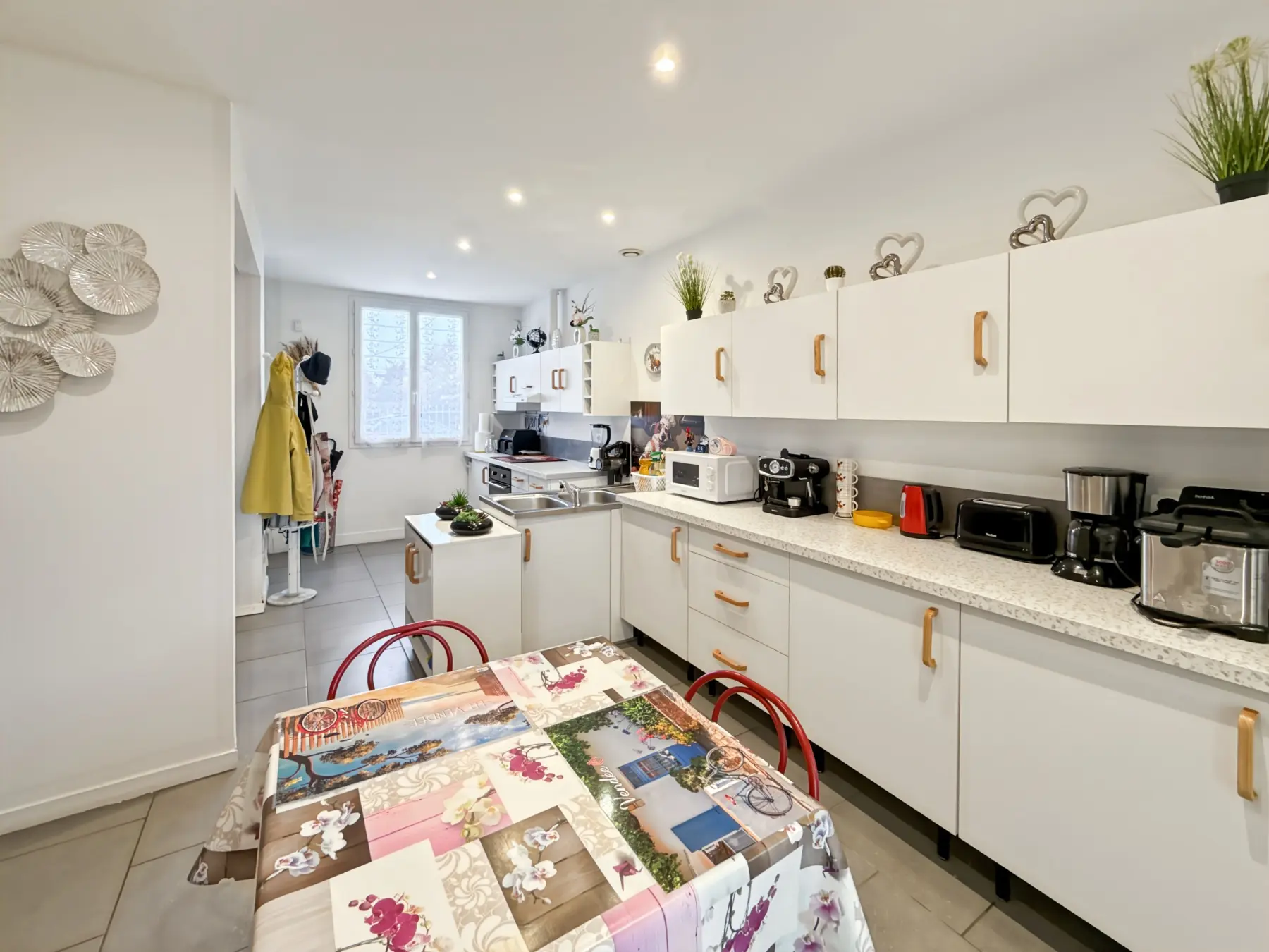 Elle se compose d’un séjour / salle à manger lumineux et convivial, idéal pour partager des moments en famille ou entre amis, ainsi que d’une grande cuisine aménagée et entièrement équipée, pensée pour le quotidien.