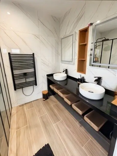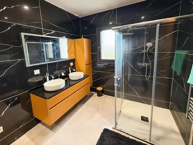 En partie nuit vous bénéficierez d'une suite parentale avec dressing et salle d'eau moderne, 3 autres grandes chambres avec placards ainsi qu'une salle de bains avec baignoire balnéo, douche et double vasques sur meuble.