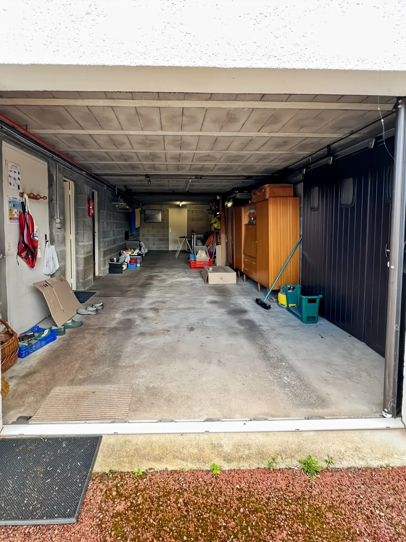 Édifiée sur un sous-sol semi-enterré, elle se compose au rez-de-chaussée d’une entrée avec placards et départ d’escalier, d’un grand garage avec porte motorisée, d’une pièce atelier, d’une spacieuse chambre, d’une chaufferie, ainsi que d’une salle d’eau avec WC. Un second garage complète ce niveau.