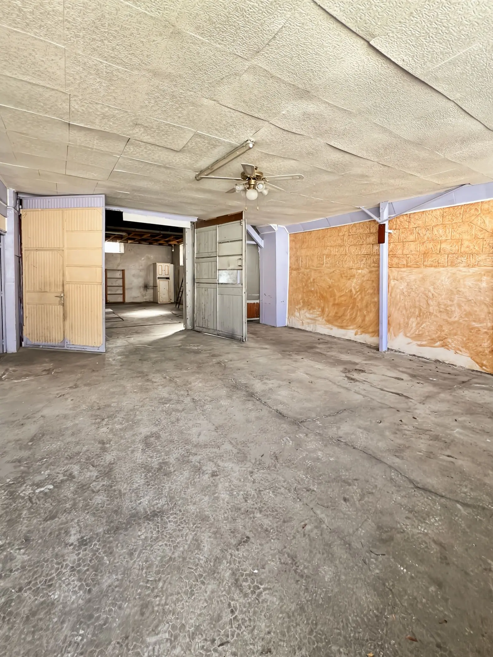 Un porche d’environ 34 m² dessert une cour intérieure, permettant l’accès à un garage situé en fond de parcelle.